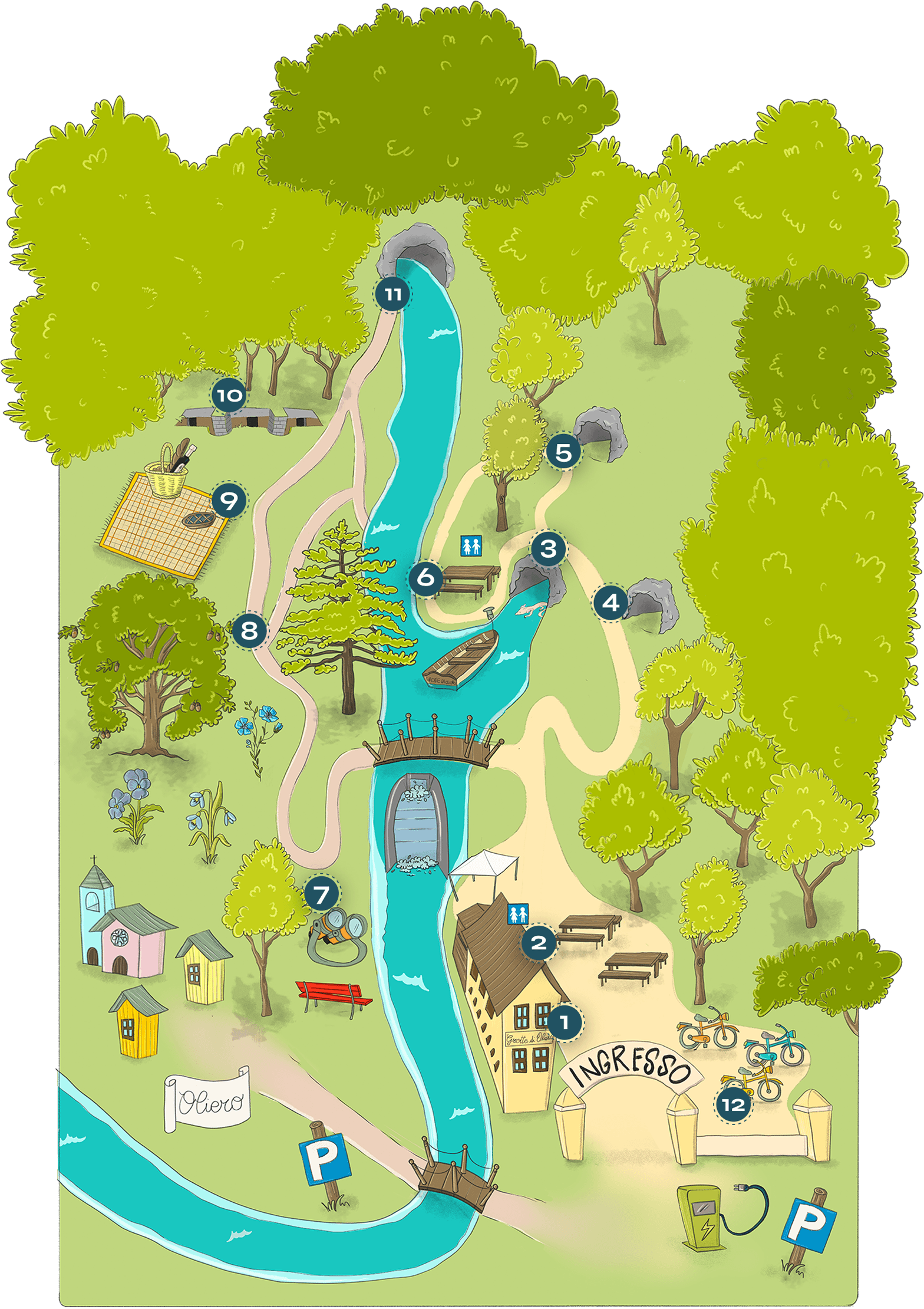 All’interno del parco, due musei offrono un viaggio affascinante tra acquario e rettiliario, per scoprire la fauna locale e osservare da vicino la biodiversità delle Grotte di Oliero.